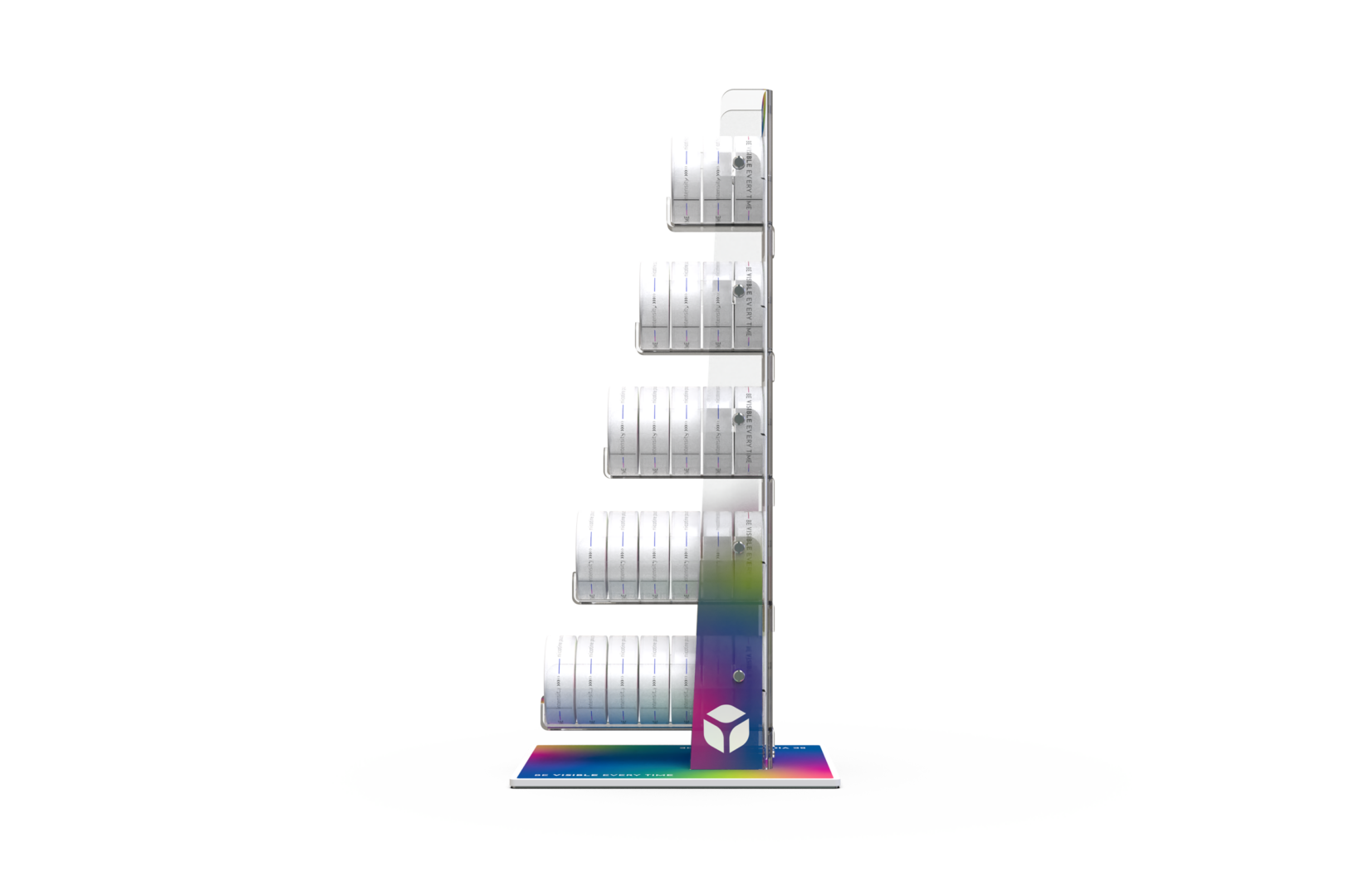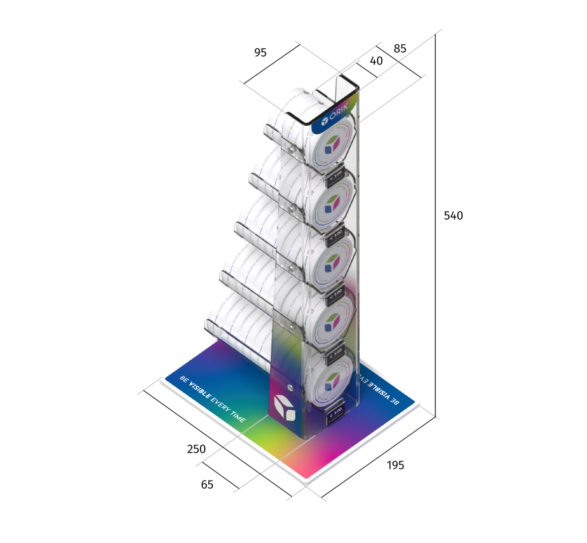 TOTEM 1x5 je obojstranným, voľne stojacim riešením vystavenia Vašich produktov. Na minimálnej ploche, ktorú zaberie na prevádzke, ponúka vysokú kapacitu, zaujímavý design a mimoriadnu pútavosť. Počet produktov a od toho závislá dĺžka jednotlivých políc, rastie vzostupne zhora nadol, pričom zabezpečuje stabilitu prezentéra a v neposlednom rade tvorí zaujímavý vizuálny prvok. Pevnosť a stabilitu ďalej podporuje kovová výstuž ukrytá v spodnej podstave. Stojan výborne funguje z troch strán, pričom je len na Vás, ktorú z nich určíte zákazníkovi a ktorú bude obsluhovať servis predajne. Stojan môžete prisunúť aj k zvislej ploche (stene) a používať ho len z odkrytej strany. Možnosť výberu je len na Vás. Miesto pre branding je variabilné. Dá sa umiestniť na plochu podstavy, bočnice stojana alebo bočnice políc či vrchnú časť stojana nad produktami. Z oboch strán myslíme aj na podanie dôležitej informácie pre zákazníka akou je cena. Preto sme na stojane vyhradili špeciálnu plochu pre cenovku či podľa potreby častejšej obmeny - cenovníkovú lištu pred každým radom produktov. Tento prezentér vieme navrhnúť na mieru podľa požiadaviek - či sa jedná a výšku, kapacitu alebo samotné rozmery.