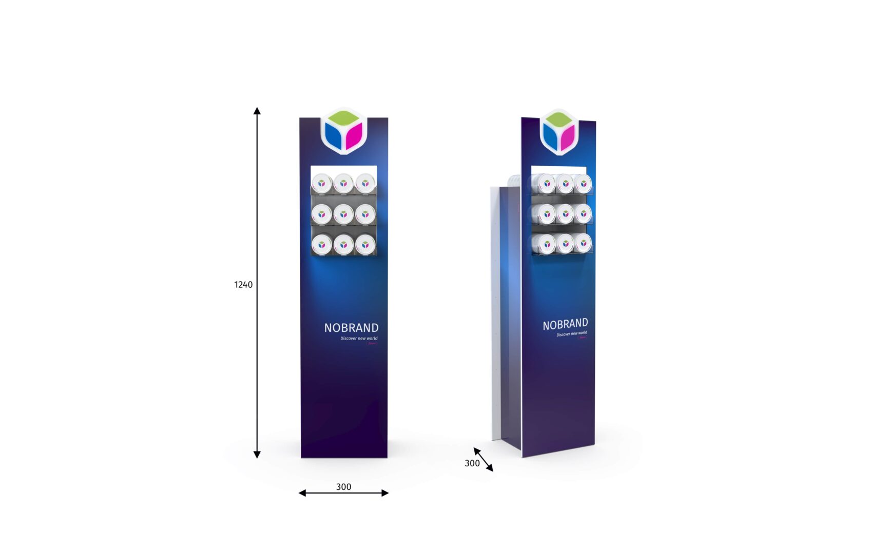 V prípade, že sa vám neporadilo umiestniť váš dispenser (či predajný stojan) na kasu, za kasu policu či iné miesto na prevádzke - nech už z dôvodu nedostatku miesta, alebo potrebujete umiestniť na predajňu väčšie množstvo svojich výrobkov,ktoré do malého priestoru skrátka nevôjdu, máme aj pre takýto problém riešenie. Je ním náš Floor 0139 Dispenser. Jedná sa o samostojaci dispenser, ktorý je možné jednoduch postaviť kdekoľvek na prevádzke. Kapacitu vám vyrobíme akúkoľvek si budete priať. V tejto navrhovanej konfigurácií má 9 Facingov po 10kusov balení. Teda spolu až do 90 balení pripravených k okamžitému predaju. Klienti sa z pravidla z tohto dispensera obsluhujú sami. Všetky plochy predstavujú skvelý priestor pre váš brand ktorý vám u nás radi pripravíme.